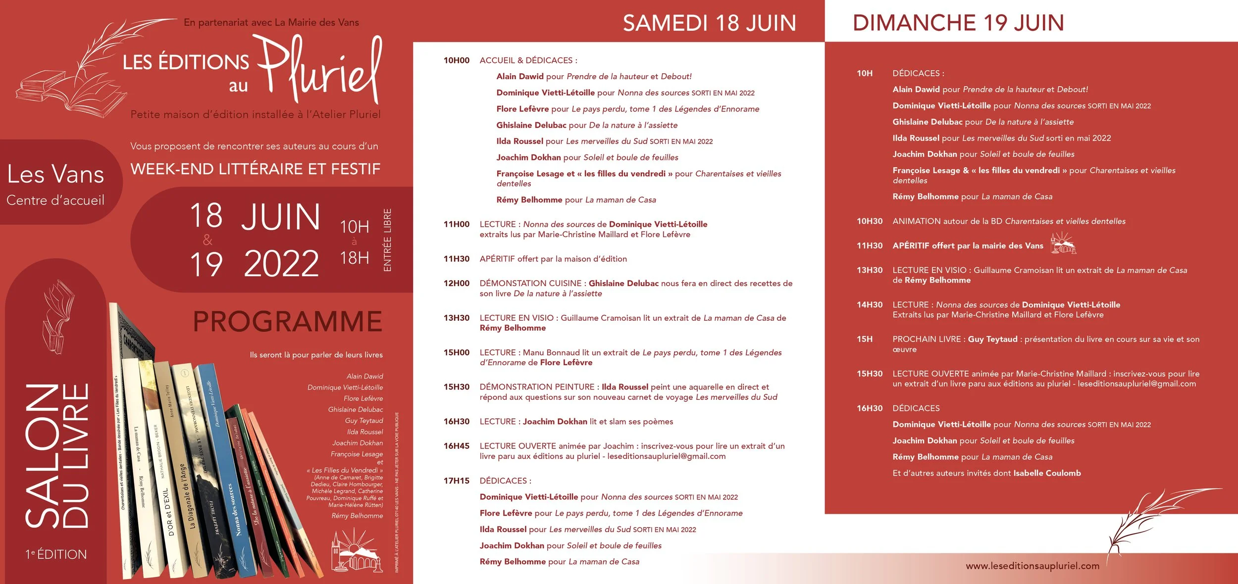 Le dimanche sera consacré au salon à proprement parler : un temps fort unique avec exposants, animations et lectures au Centre d’accueil des Vans.